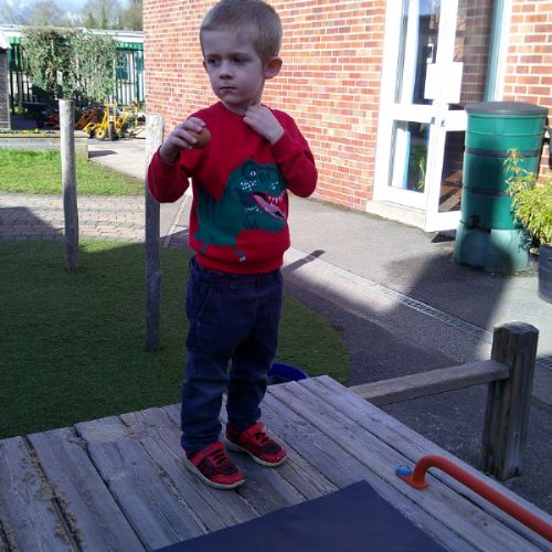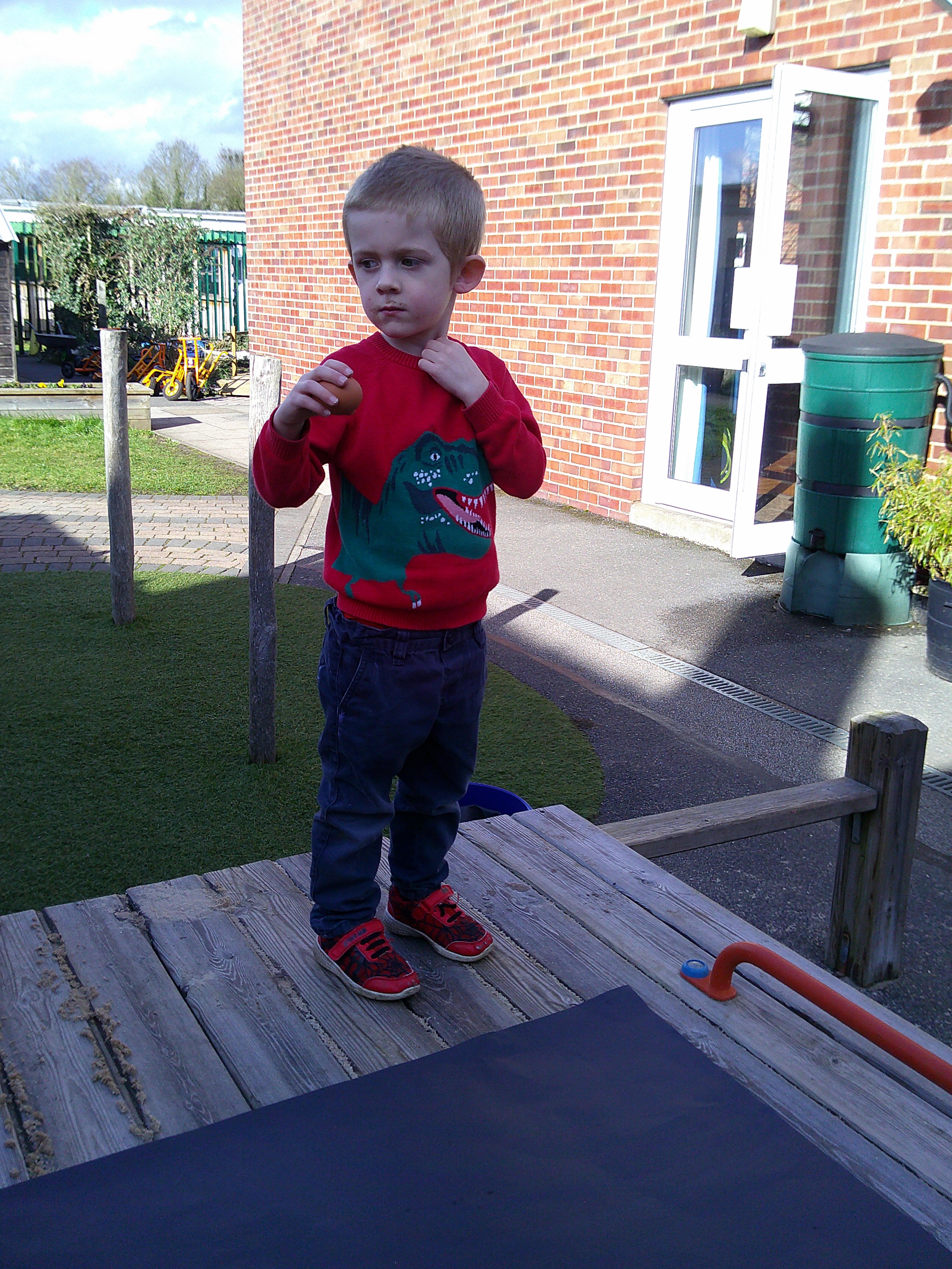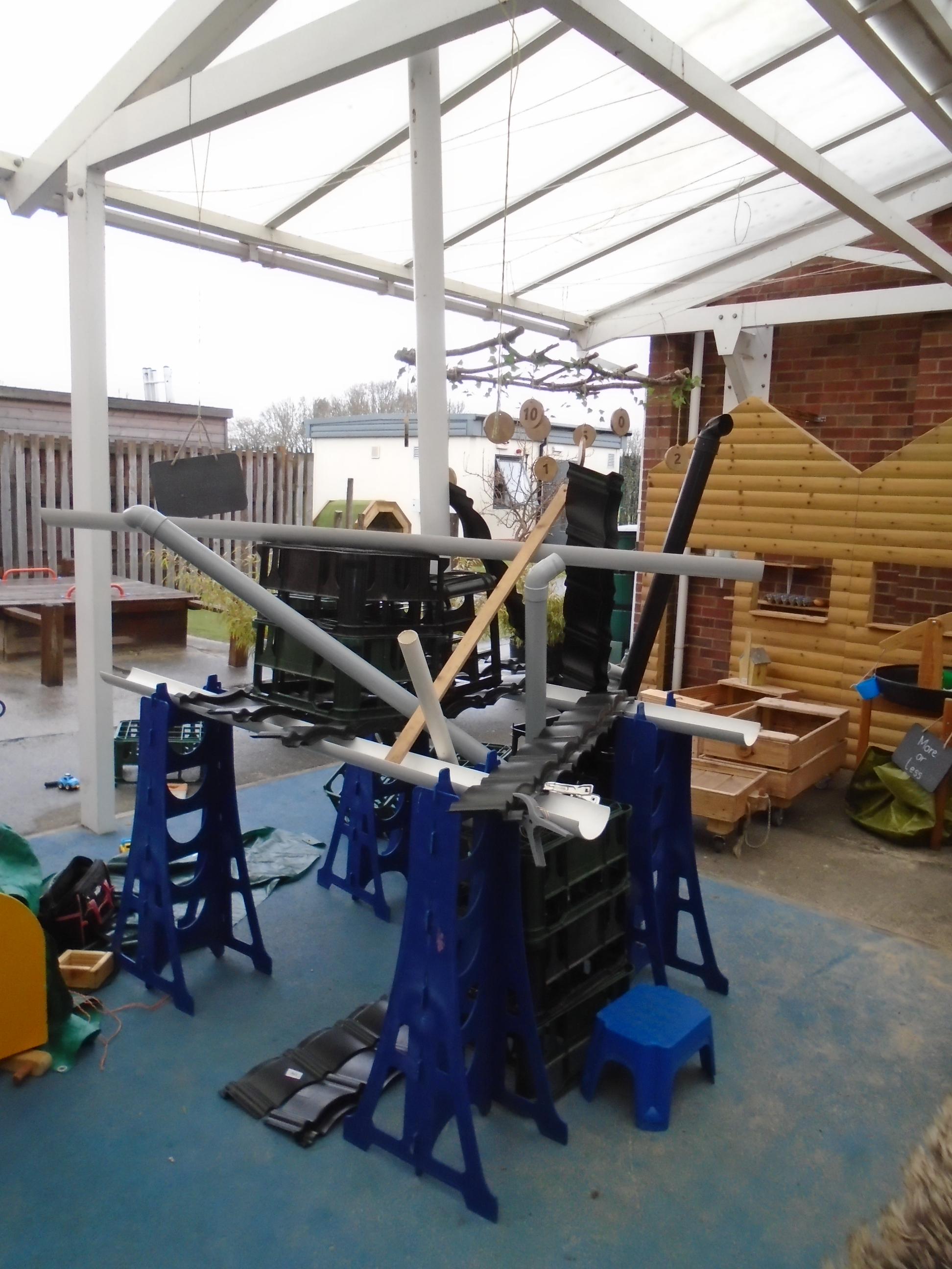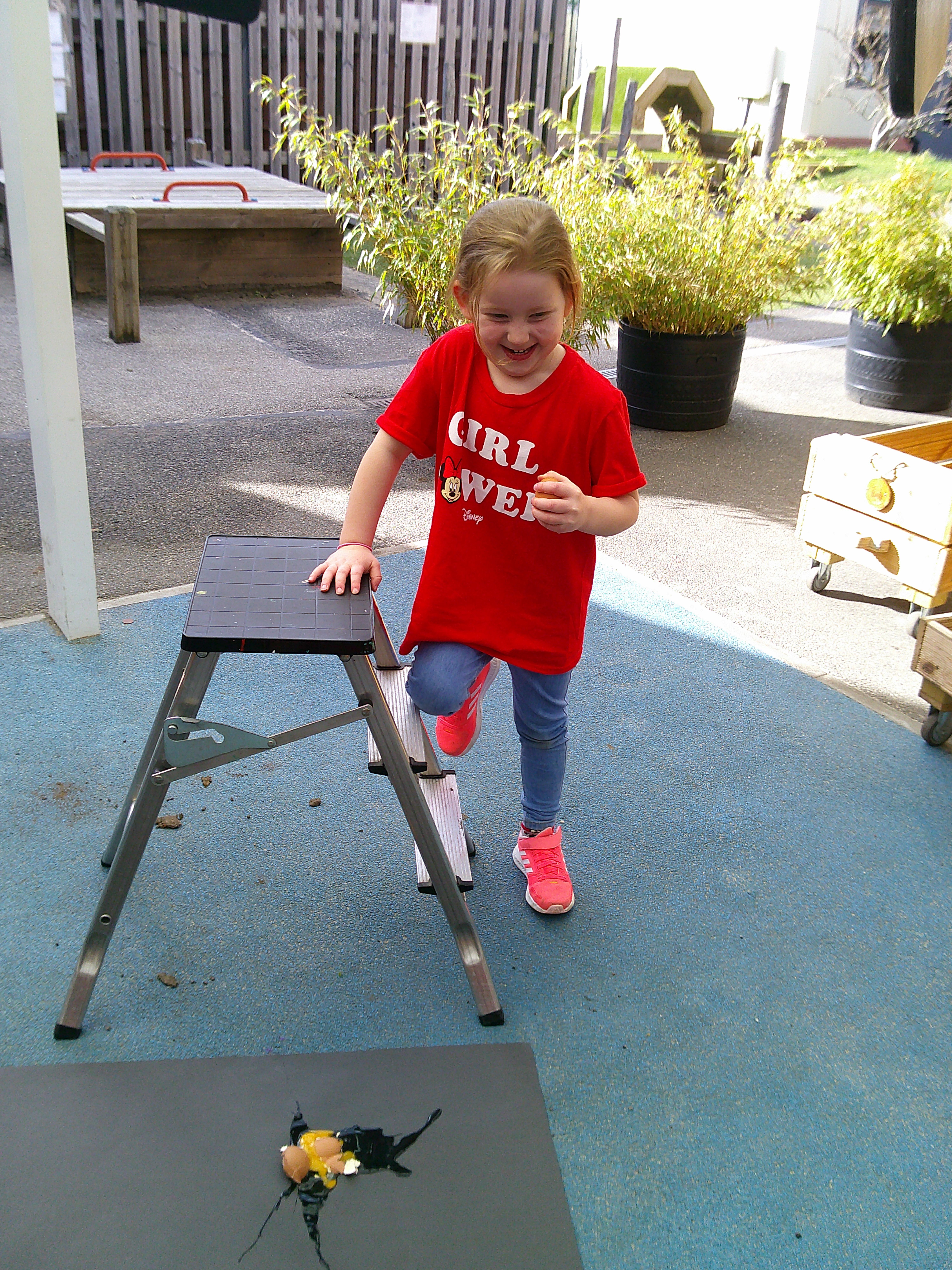 Safety surface under the bridge                  The eggs bounced and sustained minor dents