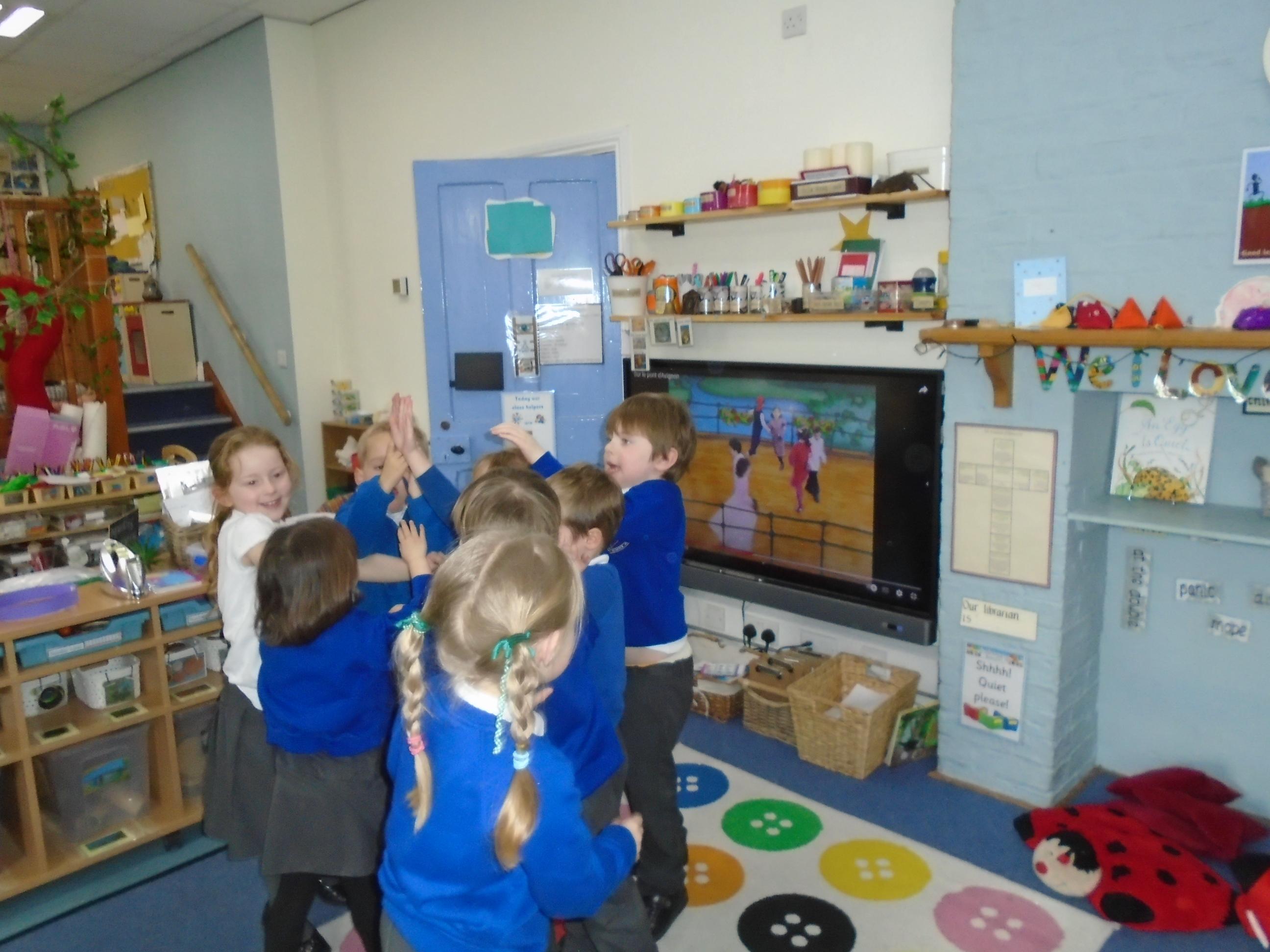 At the end of the day we played dominoes and watched the story of Six Dinner Sid by Inga Moore on YouTube